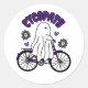 Sticker Rond Fantôme d'Halloween Cycopath sur un vélo violet