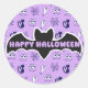 Sticker Rond Fantôme, toiles d'araignées et chats noirs violet