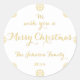 Elégant, personnalisé, personnalisé, blanc, belle écriture / typographie "Nous vous souhaitons un joyeux Noël", flocons de neige, classique feuille d'autocollants ronds. Pour customiser, tapez simplement votre nom / nom du couple / nom de famille / nom de famille, et l'année. Un bel autocollant parfait pour vos mailings de noël cette saison des fêtes.