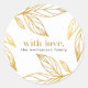 Sticker Rond Faux Gold Winter Leaf avec le nom Noël Holiday