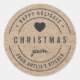 Autocollant "Christmas Jam Happy Holidays" en style kraft rustique gras avec un cœur gris foncé, texte entièrement en gris foncé sur un fond à motif de type kraft. Il est parfait pour étiqueter ce que vous avez fait.