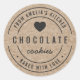Autocollant "Baked with Love" en kraft faux rustique gras, avec un cœur gris foncé, le texte entièrement en gris foncé sur un fond à motif kraft. C'est parfait pour étiqueter vos préparations culinaires.