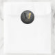 Autocollant rond classique avec une belle image de faux papier d'or et de papillon noir. Le design circulaire le rend parfait comme sceau d'enveloppe.