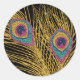 Sticker Rond Faux Parties scintillant Gold Peacock Feathers