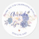 Sticker Rond Faux Vellum Blue Floral Élégant Mariage Script