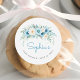 Sticker Rond Faveur de Baby Shower Élégante Fleurie Bleu Pastel