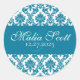 Sticker Rond Faveur de mariage élégante en damas sarcelle blanc