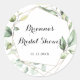 Cette autocollante de faveur de mariage élégante géométrique or et vert est parfaite pour une douche de mariage moderne. Le design présente des feuilles de eucalyptus vertes botaniques peintes à la main, ornant un cadre géométrique or.