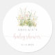 Cet autocollant de favori de baby shower fleur sauvage boho végétal est parfait pour une baby shower rustique. Le design présente des fleurs sauvages aquarelles roses, blush, jaunes et blanches disposées en bouquets élégants.