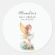 Une illustration d'aquarelle enchanteresse avec une douce petite fée dans un petit jardin enchanté aux couleurs vert émeraude et or, orne cet élégant et adorable autocollant personnalisé de douche pour bébé fille. Parfait pour une fête du printemps, des événements de Pâques, une fête d'été dans le jardin, un charmant baby shower à thème pique-nique, ou pour une célébration toute l'année en l'honneur d'une maman qui aime la forêt enchantée, le thème de la fée.