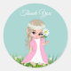 Sticker Rond Fées et fleurs sur Merci bleu clair