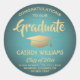 Ajoutez une touche personnalisée aux annonces et invitations de fin d'études universitaires ou secondaires avec ces autocollants ronds ou sceaux de lettre personnalisés en faux-plaqué sarcelle et or clair. Tout le texte est simple à personnaliser. Le design présente un fond en acier inoxydable brossé sarcelle bleu-vert, un chapeau de diplômé en aspect métallisé, une typographie moderne élégante et une calligraphie manuscrite. Veuillez noter que l'or est une couleur imprimée, et non un plaqué. C'est un ajout élégant aux faveurs de fête de fin d'études et aux décorations. Félicitations au diplômé !