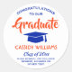 Ajoutez une touche personnalisée aux annonces et invitations de remise de diplôme universitaire ou de lycée avec ces autocollants ronds orange et bleu / sceaux d'enveloppe. Tout le texte est simple à personnaliser. La conception présente des couleurs scolaires bleues et orange, une typographie moderne élégante et une calligraphie script manuscrite. Fait une addition élégante aux faveurs et décorations de fête de remise de diplôme. Félicitations au diplômé !