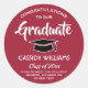 Ajoutez une touche personnalisée élégante aux invitations à l'obtention d'un diplôme d'études supérieures ou secondaires, aux annonces et aux faveurs de la fête avec des autocollants ronds élégants rouges, blancs et noirs personnalisés. Tout le libellé de ce modèle est simple à customiser pour les étiquettes d'enveloppe ou de remerciement. Le design moderne comprend un casquette en mortier noir et blanc, une calligraphie stylisée et une typographie vintage classique. Ces autocollants ajoutent une touche unique de finition à une célébration de graduation. Félicitations au diplômé !