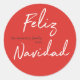 Sticker rond Feliz Navidad Red White Holiday