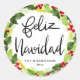 Sticker Rond Feliz Navidad Script Red Berry Holly Wreath