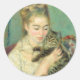 Sticker Rond Femme au chat par Auguste Renoir