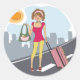 Ce design est une femme avec une valise. Elle se tient sur le côté de la route avec sa valise rose et tient aussi un sac à main. Elle est prête à aller quelque part. Cette femme au design de valise a l'air super