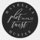 Parfois, les choses changent. Mettez à jour vos invités mariages avec votre nouvelle date de mariage avec notre moderne enregistrer les autocollants de date. Le design se compose d'une disposition simple et moderne avec "Plot Twist" affiché dans la calligraphie moderne. Personnalisez avec le nom du couple et la date du mariage.