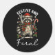 Sticker Rond Feral And Festive Raccoon Santa Hat Christmas Ligh