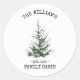 Apportez l'esprit festif dans votre maison avec notre Sticker de Noël, avec un arbre de Noël à l'aquarelle magnifiquement peint sur un arrière - plan blanc immaculé avec le nom de famille.