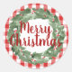 Ferme Rouge Blanc Buffalo Check Plaid Joyeux Noël Classic Étiquette ou Stickers.