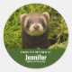 Autocollant de cuisine personnalisé avec votre nom. Une adorable photo d'un petit furet brun debout dans une longue herbe. Aussi mignon que possible !