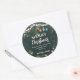 Cet autocollant de Noël présente un design de vacances classique et festif avec des branches de pin ornées de décorations, de pinecones, de baies blanches et de sucres de canne. Placé contre un riche arrière - plan vert foncé aux délicats accents de neige, l'autocollant comprend un message personnalisé de "Joyeux Noël" et des souhaits de vacances chaleureux. Le format circulaire le rend parfait pour ajouter une touche de charme à l'emballage cadeau, enveloppes ou faveurs de fête de vacances.