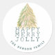 Stickers Festive Green Christmas Tree Watercolor Holiday Stickers. Joyeux, joyeux joyeux et votre nom de famille - ajoutez votre texte. Dessin vert aquarelle d'un sapin de Noël. Design festif et tendre pour vos cadeaux de Noël.