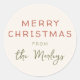 Donnez à vos forfaits de vacances une touche festive rétro avec nos Stickers de Noël Festive Red & Green Retro. Cet autocollant rond présente un "Joyeux Noël" en typographie mignonne et votre nom de famille sont affichés dans une police calligraphique, ce qui en fait la touche finale personnalisée parfaite pour les cadeaux, les cartes ou le décor de vacances. Consultez la collection liée sur cette page pour les articles correspondants, ou visitez notre magasin pour plus d'autocollants de Noël.