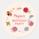 Sympa ladybug thème fête d'anniversaire en faveur autocollant avec illustration de ladybugs rouges et roses avec fleurs sauvages.