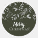 Sticker Rond Fête Botanique Feuille Vert foncé & Argent