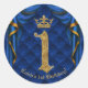 Sticker Rond Fête d'anniversaire 1 an Couronne Or et Bleu Royal