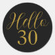 Élégant design 30 ans en noir et or. Ce design à la typographie moderne est chic en noir et or. Il comporte le texte "Bonjour 30" dans une typographie tendance. Ce design élégant est parfait pour une célébration d'anniversaire de 30 ans inoubliable, et est idéal comme sceaux pour les enveloppes d'invitation et les faveurs de fête. Si vous avez besoin d'aide pour la personnalisation, ou pour un design sur mesure, contactez-moi via le chat Zazzle.