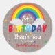 Fête d'anniversaire pour enfants rustiques merci sticker avec un arc-en-ciel magique, des étoiles colorées éparpillées et un message de remerciement qui peut être personnalisé pour tous ceux qui ont aidé à célébrer votre journée spéciale.