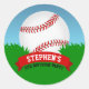 Faites un tour chez vous pour l'anniversaire de votre petit joueur de baseball avec le Sticker de la fête d'anniversaire de baseball conçu par Enchantfancy Design Company. Ces autocollants ronds comportent un baseball assis sur un terrain herbeux sous un ciel bleu. Il apportera une touche sportive à vos soirées ou décors. Une soirée à thème de baseball est idéale pour les enfants sportifs ou sportifs.