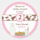 Cet autocollant rose et vache Milk and Cookies Birthday Party comporte du lait, des biscuits à puce chocolat et un marque de service parfait. Appel correspondant ci-dessous. Quelques éléments Sanqunetti Design.
