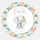 Fête d'anniversaire d'un petit éléphant d'aquarelle à l'arachide, préférez les autocollants. Avec des illustrations délicates et aquarelles d'éléphants et de superbes détails floraux. Partie d'une collection.