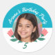 Sticker Rond Fête d'anniversaire Floral Nom photo Tout âge