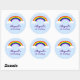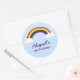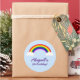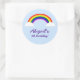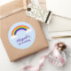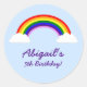 Un joyeux arc-en-ciel et une illustration de nuages sont présentés sur cet autocollant de fête d'anniversaire à thème arc-en-ciel.
