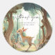 Voici l'autocollant rond présentant un cerf sur un fond forestier ! Cet autocollant charmant est parfait pour ajouter une touche de fantaisie à vos décorations de fête de bébé.