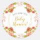 Sticker Rond Fête de bébé Fleurs Aquarelle Or Pêche