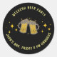 Fête de bière Weekend moderne Sticker Classic Round. Cet autocollant a du texte simple et arrière - plan noir avec des illustrations de lunettes de bière. Modifiez simplement les détails pour l'utiliser. Vous pouvez l'utiliser pour les fêtes de fin de semaine, les fêtes de bureau des fêtes d'été de vacances.
