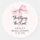 Autocollant rond classique de douche de mariée avec un nœud papillon rose. Articles assortis disponibles.