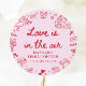 Ajoutez une touche douce de la Saint-Valentin à votre shower de mariage avec cet autocollant rond classique "L'amour est dans l'air" rose ! Avec des chérubins dessinés à la main, des flèches de Cupidon, des rubans, des enveloppes, des cœurs et des gribouillis ludiques de la Saint-Valentin, cet autocollant est le détail final parfait pour les sacs de friandises, les faveurs, les enveloppes, les boîtes et la décoration de fête.