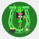 Sticker Rond Fête de la St Patrick Brunette Girl Leprechaun