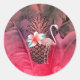 Sticker Rond Fête de luau d'ananas à paillettes tropicales rose