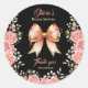 Sticker Rond Fête de mariage avec un nœud floral or et rose
