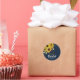 Un autocollant élégant pour fête de mariage avec une superbe combinaison de couleurs. Avec un fond bleu marine tendance, une flore champêtre vintage de tournesols jaunes estivaux et du feuillage avec confettis en faux foil doré. Tout le texte est facile à personnaliser en utilisant le modèle fourni.