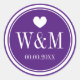 Monographie de mariage royale violet et blanc pour les autocollants. Coeur mignon avec nom monogrammé initiales de la mariée et du marié plus la date du mariage. Merci personnalisées autocollants ou scellants d'enveloppe / sceaux pour enregistrer les cartes de date et les invitations. Élégante typographie stylisée pour les initiales de mariée et de mariée. Design chic paraphé / impression fantaisie. Couleur arrière - plan personnalisable. Amour romantique thème design étiquette. Aussi bon pour la douche nuptiale, fiançailles, bachelorette ou fête d'anniversaire.